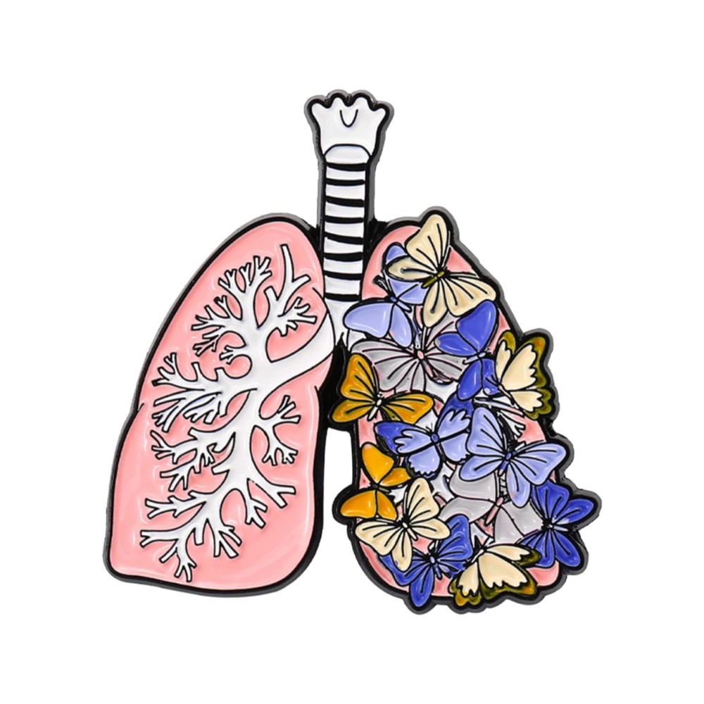 • دبوس رئة، الاكسسوار الطبي الذي يجمع بين التصميم الجذاب والأناقة. تم تصميمه على شكل رئة بشكل إبداعي وفريد، مزخرف بأزهار جميلة.