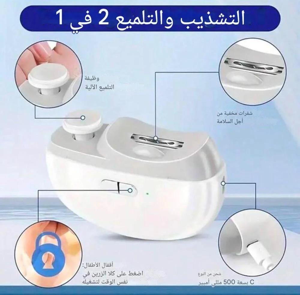 - مبرد اظافر كهربائي جهاز 2 في 1 يوفر لك الوقت والجهد من خلال إمكانية تقليم وتلميع الأظافر في خطوة واحدة.