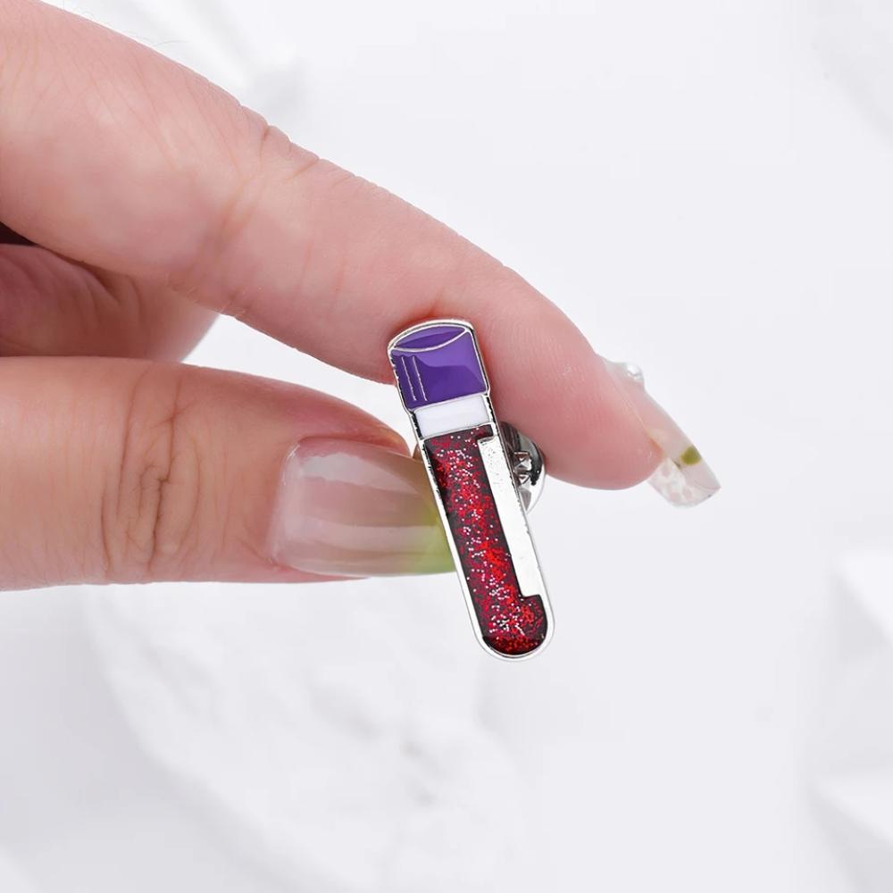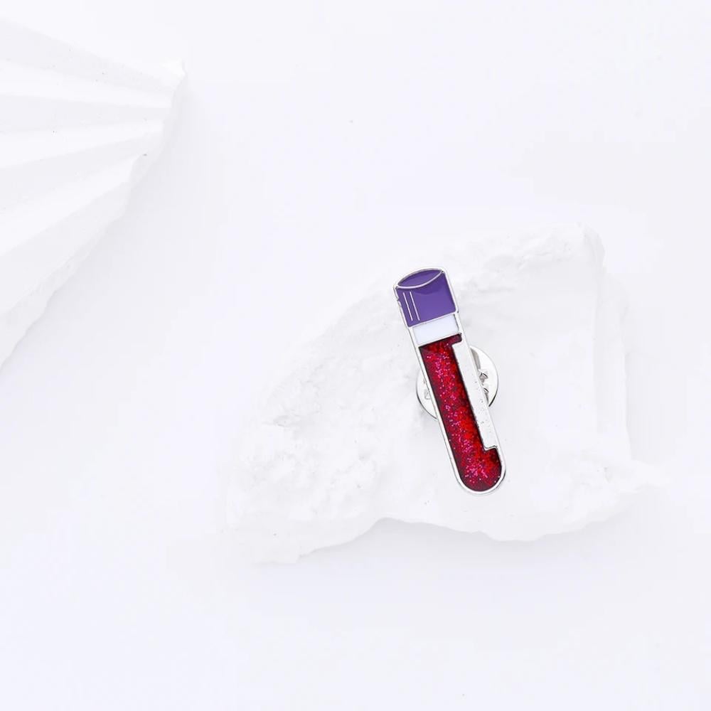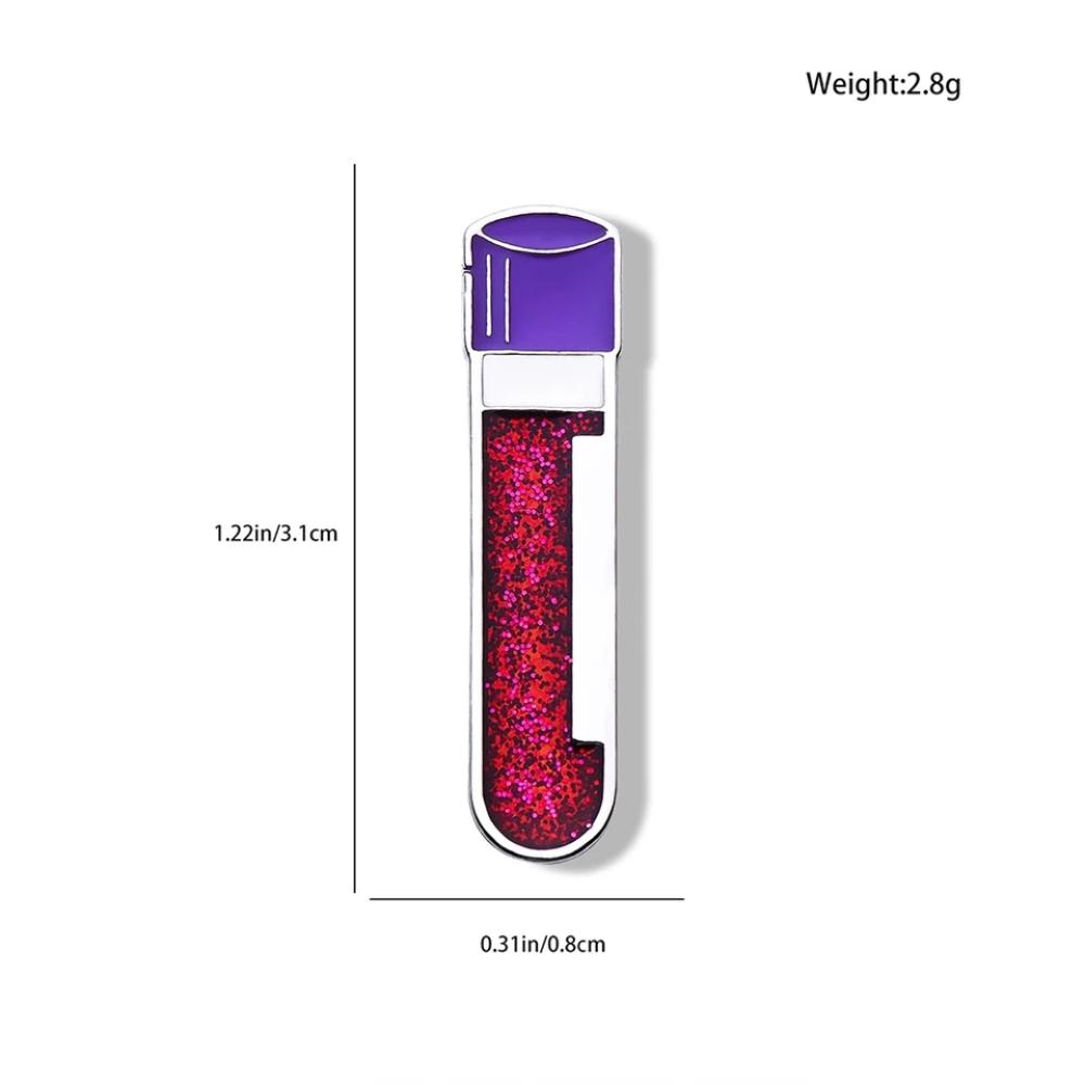بروش مختبرات طبية مصمم بشكل أنبوب دم، مما يجعله خيارًا مثاليًا للممارسين الصحيين وطلاب المختبرات الطبية. يضيف لمسة مهنية وأنيقة للزي الرسمي، ويعبر عن التخصص في مجال المختبرات الطبية.