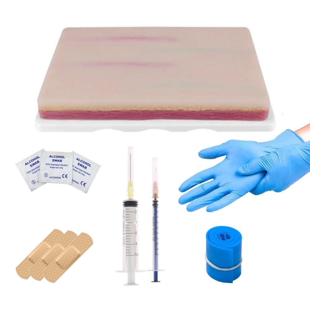 - مجموعة أدوات التدريب تشمل كل ما تحتاجه للتدريب على أنواع الحقن المختلفة (IV, IM, SC, ID)، مما يجعل عملية التعلم أكثر سهولة وفاعلية.