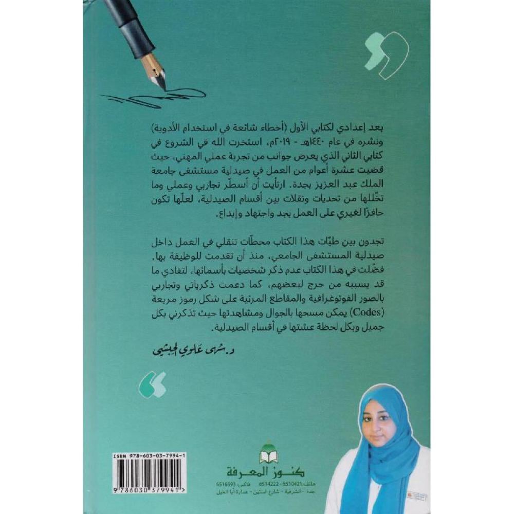 بعد النجاح الكبير لكتابها الأول «أخطاء شائعة في استخدام الأدوية» الصادر عام 2019م، تتابع الكاتبة رحلتها الأدبية والمهنية في هذا الكتاب، حيث تسلط الضوء على جوانب من تجربتها العملية داخل المستشفى الجامعي.